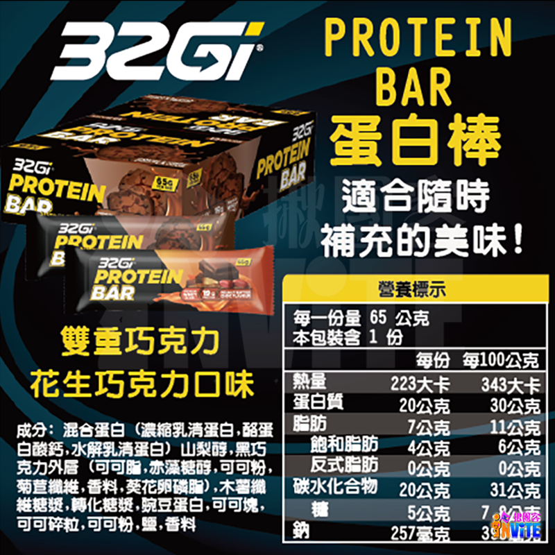 32Gi 蛋白棒 雙重巧克力/花生巧克力 (65g/包)